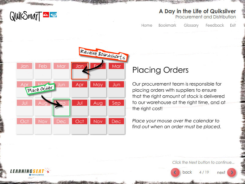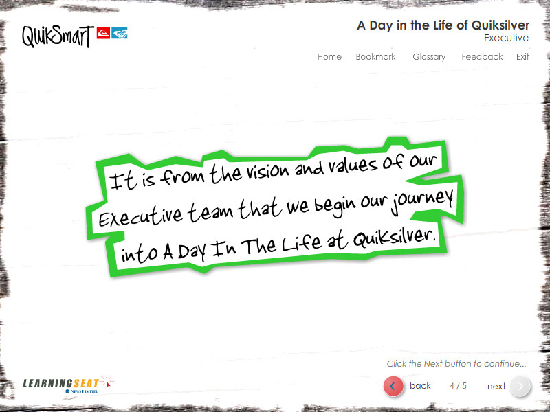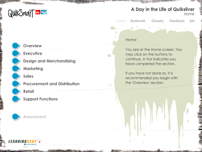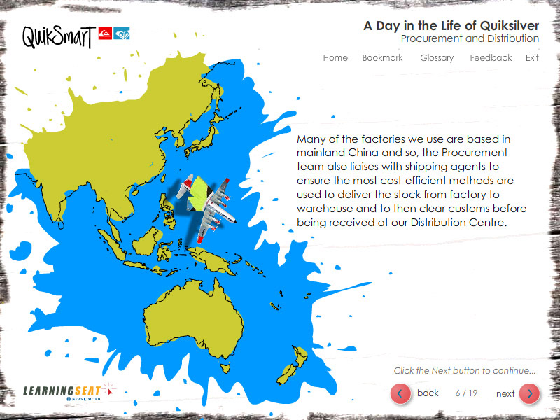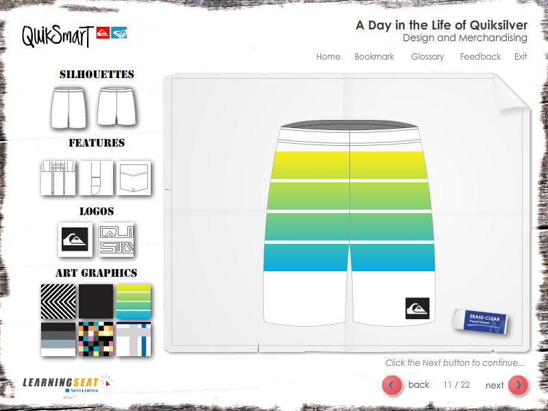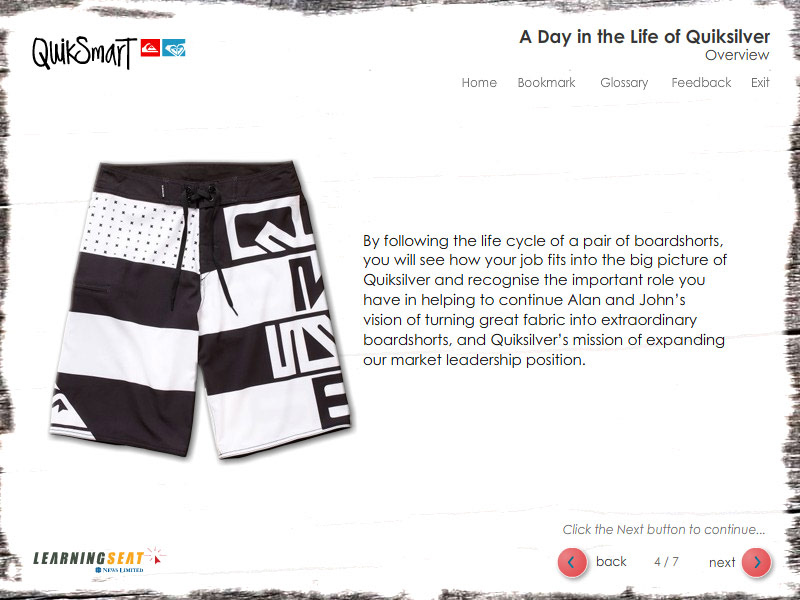 An eLearning course designed to teach employees of Quiksilver the end to end proccess of product design.